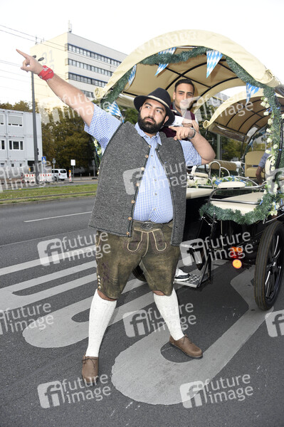 Faisal Kawusi und Timur Ülker beim Fassanstich bei der 9. Hofbräu Berlin Wiesn im Hofbräu Wirtshaus Berlin. Berlin, 19.09.2020
