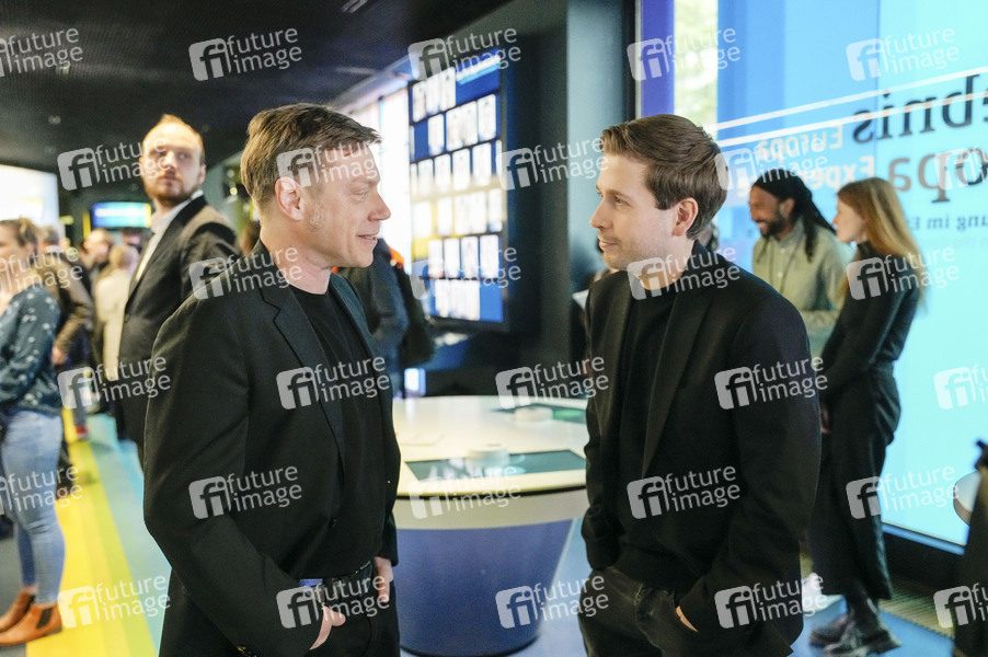 Martin Schirdewan und Kevin Kühnert bei der Vorstellung des Wahl-O-Mat zur Europawahl mit Wahlprogrammen der politischen Parteien mit Vertretern der Parteien im Europäischen Haus. Berlin, 07.05.2024