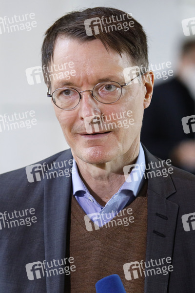 Karl Lauterbach beim Pressestatement nach der Befragung der Bundesregierung in der 217. Sitzung des Deutschen Bundestages im Reichstagsgebäude. Berlin, 24.03.2021