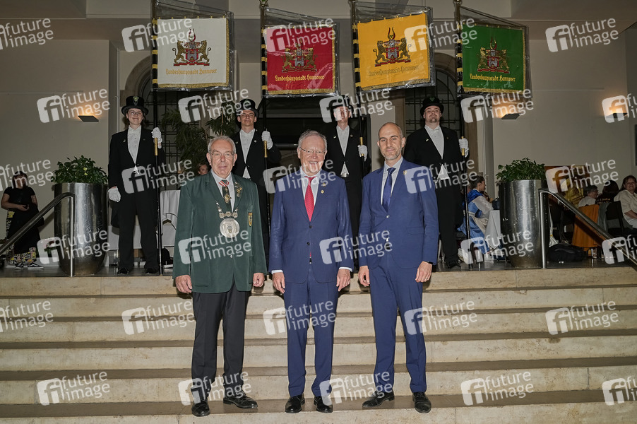 Paul-Eric Stolle, Stephan Weil und Belit Onay beim Schützenausmarsch zum 495. Schützenfest in der Innenstadt. Hannover, 30.06.2024