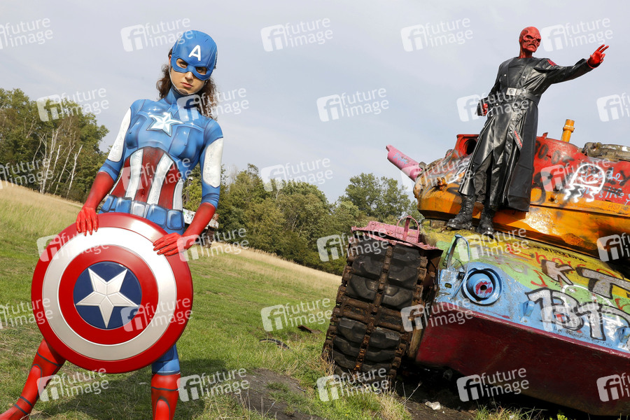 GEEK ART - Bodypainting and Transformaking: Captain America vs. Red Skull Photoshooting mit Lena und Patrick auf einem Truppenübungsplatz. Langenhagen, 20.09.2020 - Ein Projekt des Fotografen Tschiponnique Skupin und des Bodypainters und Transformakers Enrico Lein