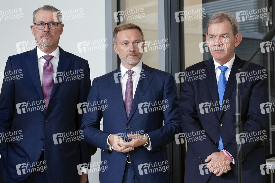 Rainer Dulger, Christian Lindner und Reinhold von Eben-Worlee beim Wirtschaftstreffen der FDP mit dem Mittelstand im Deutschen Bundestag. 29.10.2024