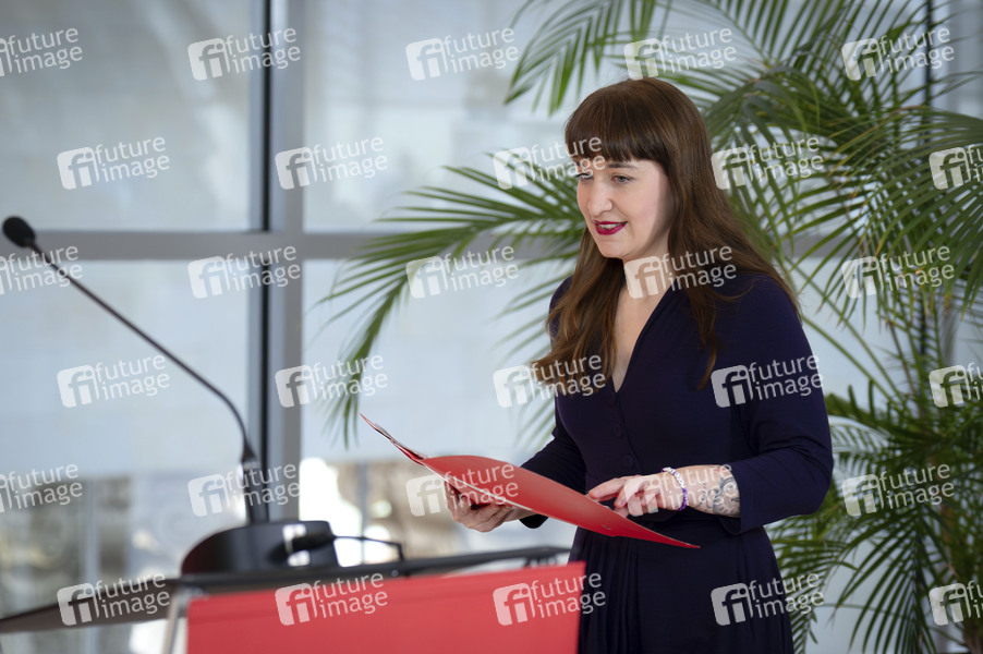 Politik, Statement, Pressekonferenz, PK, Reichstag, Deutscher Bundestag, Demokratie, Parlament, Parlamentsgebäude, Volksvertreter, MdB, Mitglied des Bundestages, Abgeordnete, Politikerin, Vorsitzende der Fraktion Die Linke
