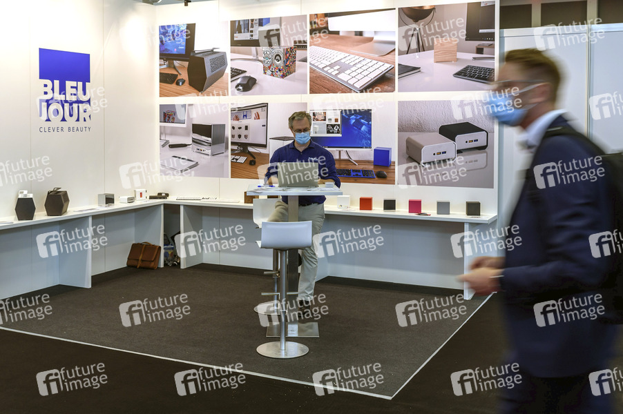 Messestand von Bleu Jour - Eröffnung der Internationalen Funkausstellung 2020 unter dem Motto 'IFA 2020 Special Edition: Tech-Branche meldet sich zurück'. Es ist die erste Messe unter Corona-Bedingungen, die zum Teil online stattfindet. Es gibt nur etwa 250 Aussteller in den Messehallen. Die Messe ist nur für Fachpublikum unter strengen Hygienauflagen zugänglich.. Berlin, 03.09.2020