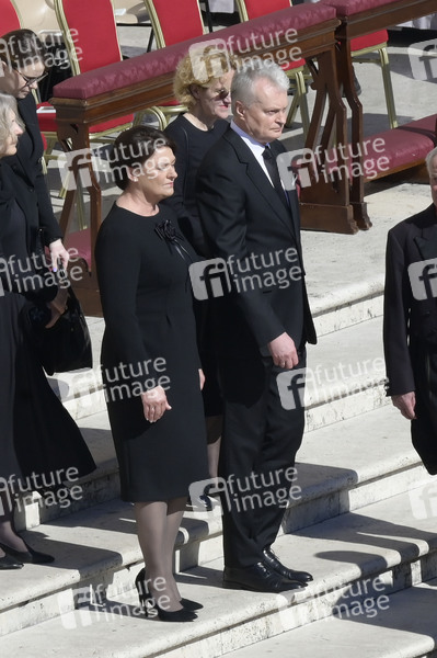 Gitanas Nauseda mit Ehefrau Diana Nausediene bei der Trauermesse für den verstorbenen Papst Franziskus auf dem Petersplatz. Vatikanstadt, 26.04.2025