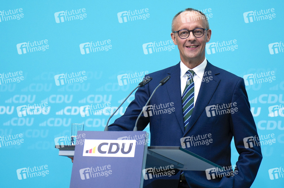 Friedrich Merz bei der Pressekonferenz der CDU zur Landtagswahl in Brandenburg im Konrad-Adenauer-Haus. Berlin, 23.09.2024
