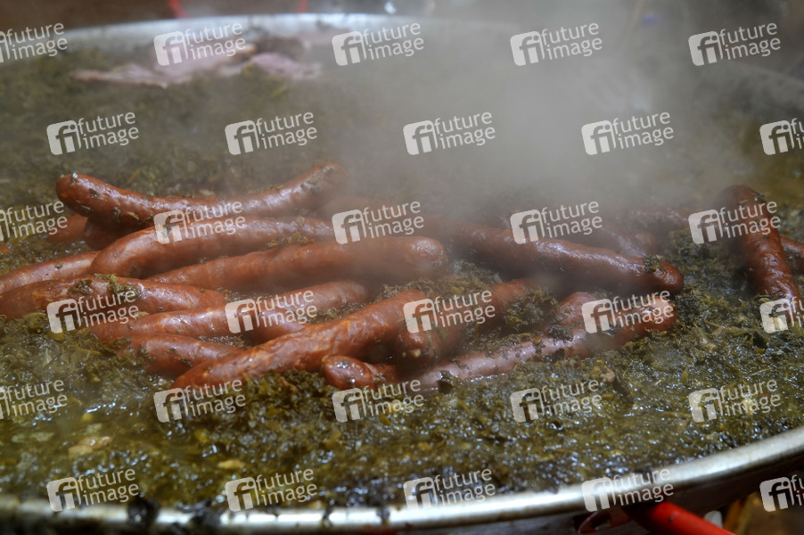 Grünkohl mit Schinkenknacker auf dem City-Weihnachtsmarkt an der Gedächtniskirche auf dem Breitscheidplatz. Berlin, 16.12.2024