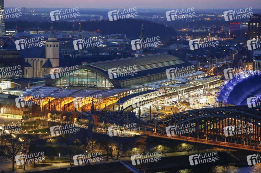 Köln Hauptbahnhof In Köln mit Abendhimmel nach dem Sonnenuntergang. Köln, 02.11.2024