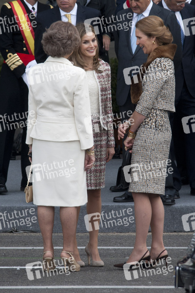 Die spanische Königsfamilie bei der Hommage an die Nationalflagge mit Militärparade am Palacio Real, Madrid