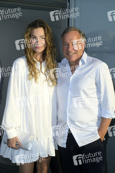 Alexandra Kamp und Nico Hofmann beim Eröffnungsempfang der UFA Filmnächte 2022 auf der Dachterrasse der Bertelsmann Repräsentanz. Berlin, 24.08.2022
