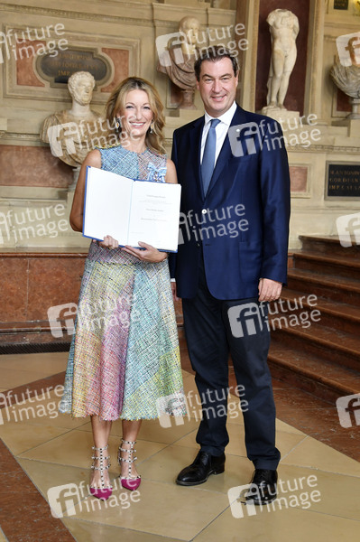 Monika Gruber und Markus Söder bei der Verleihung des Bayerischen Verdienstordens 2019 im Antiquarium der Münchner Residenz. München, 22.07.2019