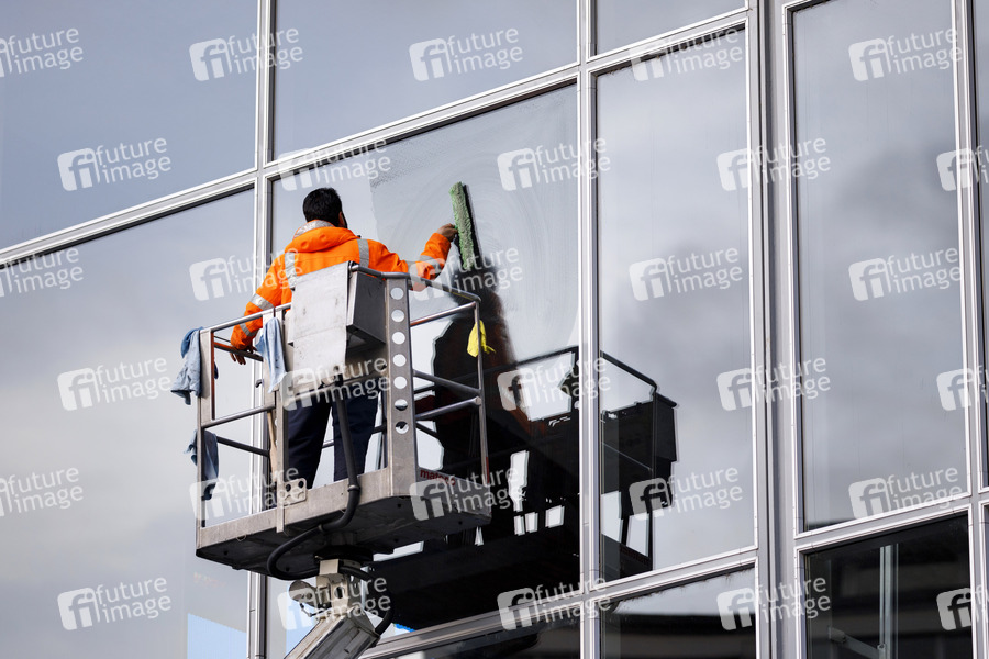 Fenster, Putzen, Fensterputzen, Fassade, Fassadenreinigung, Fassadenreiniger, Gebäudereinigung, Gebäudereiniger, Arbeitssicherheit, Arbeitsrisiko, Hubsteiger, Scheibe, Reinigen, Tariflohn, Reinigungsarbeiten, Sauberkeit, Hygiene, Seife, Seifenlauge, Fensterreiniger, Alkohol, streifenfrei, Arbeit, Kurzarbeit, Handwerk, Dienstleistung, Branchenreport, Einkommen, Durchschnittseinkommen, Einkommensrechner, Lohn, Festanstellung, Reinigungsbranche, Mindestlohn, Warnweste, Stundenlohn, Tarifvertrag, Gehalt, Gehaltsvergleich, Gehaltsrechner, Putzen, Tarifverhandlungen, Gefahr, gefährlich, Job, Höhe, hoch, Höhenangst, Gefahrenzulage, Glas, Symbolbild, Symbolfoto