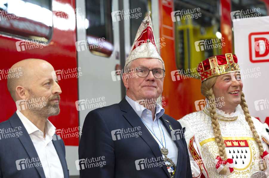 Frederik Ley, Sebastian Schuster, un Ralf Schumacher / Jungfrau Grit bei der Präsentation der Karnevals-S-Bahn 2020 im S-Bahn-Werk Köln Nippes. Köln, 31.01.2020