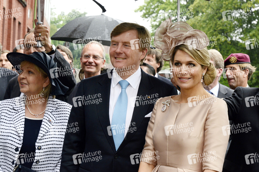 Hannelore Kraft, König Willem-Alexander der Niederlande und Königin Maxima der Niederlande bei ihrer Ankunft bei der Firma MMID vor dem Gebäude G7 auf der Katernberger Strasse. Essen, 27.05.2014