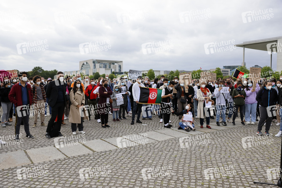 Demonstranten bei der Kundgebung unter dem Motto 'Luftbrücke jetzt! Schafft sichere Fluchtwege aus Afghanistan!' auf dem Platz der Republik. Berlin, 17.08.2021