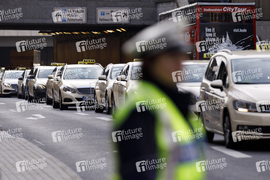 Aus Protest gegen Uber nehmen mehrere hundert Taxen an einem Autokorso durch die Innenstadt teil. Köln, 10.04.2019