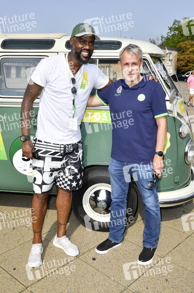 Grafite und Pierre Littbarski beim Start der 12. Auto Bild Klassik Rallye am Olympiastadion. Berlin, 29.08.2019