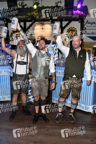 Senay Gueler, Felix von Jascheroff und Björn Schwarz beim Wiesn-Anstich zum Oktoberfest 2022 im Hofbräu Berlin. Berlin, 17.09.2022