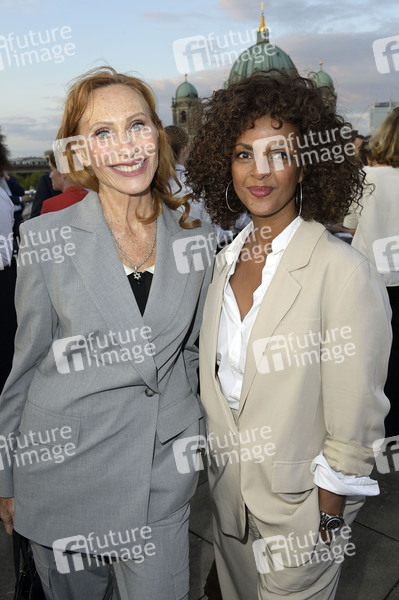 Andrea Sawatzki und Dennenesch Zoude beim Eröffnungsempfang der UFA Filmnächte 2024 auf der Dachterrasse der Bertelsmann Repräsentanz. Berlin, 21.08.2024