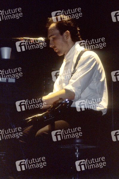 The Edge von U2 live bei einem Konzert der 'The Unforgettable Fire'-Tour in der Wembley Arena. London, 14.11.1984