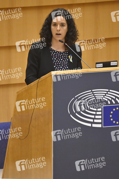 Rede, außerordentliche Sitzung, Sondersitzung, Politik, Europaparlament, EU-Parlament, EP, Parlament der Europäischen Union, Parlamentum Europaeum, MdEP, Mitglied des Europäischen Parlaments, Krieg, Angriffskrieg, Einmarsch, Europapolitik, internationale Krise, internationale Politik, internationales Recht, Konflikt, Krieg, Kriegsbeginn, Kriegsverbrechen, Krise, Militäroffensive, Militärschlag, Sanktionen, Solidarität, Solidaritätsbekundung, Ukraine, Ukrainekonflikt, Ukraine-Konflikt, Ukrainekrise, Ukraine-Russland-Krise, Politikerin, Frankreich, La France insoumise, FI, Co-Vorsitzende der Fraktion Die Linke, GUE/NGL