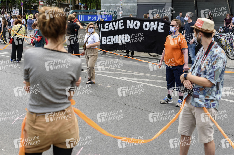 Demonstration vom Bündnis 'Unteilbar' mit einer Menschenkette gegen Rassismus und soziale Ungerechtigkeit vom Brandenburger Tor in Berlin-Mitte bis zum Hermannplatz in Berlin-Neukölln unter dem Motto 'SoGehtSolidarisch'. Berlin, 14.06.2020