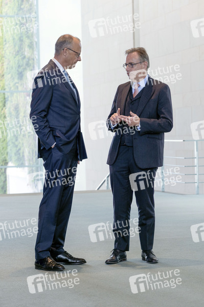 Friedrich Merz und Bart de Wever beim Empfang des Premierministers von Belgien mit militärischen Ehren zu einem gemeinsamen Gespräch mit anschließendem Pressestatement im Bundeskanzleramt. Berlin, 26.08.2025