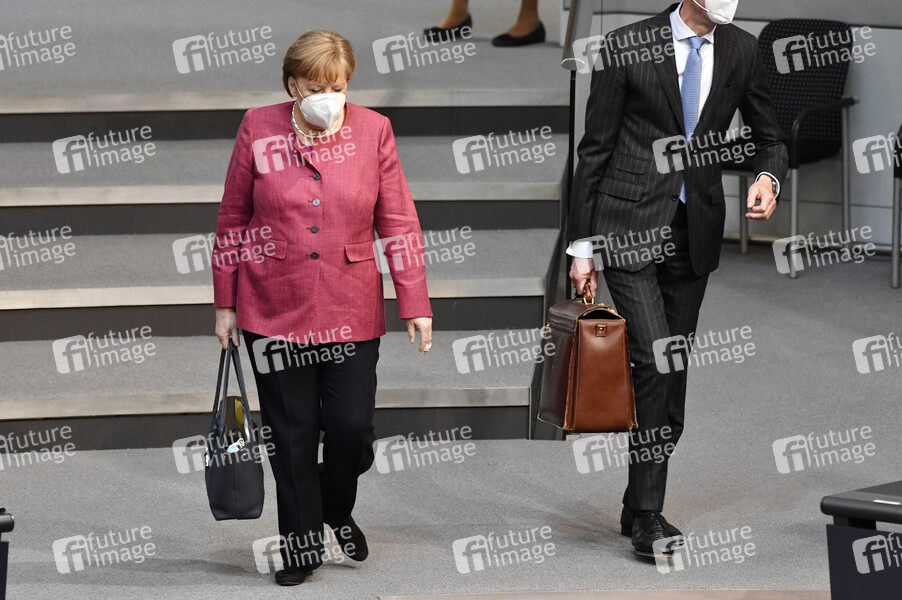 Angela Merkel in der 223. Sitzung des Deutschen Bundestages im Reichstagsgebäude. Berlin, 21.04.2021