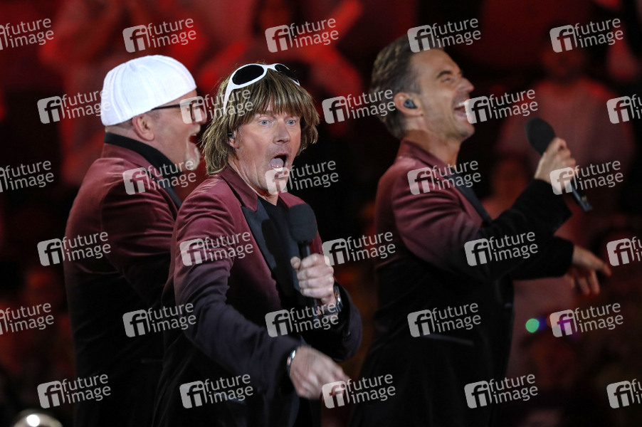 DJ Ötzi, Mickie Krause und Florian Silbereisen in der TV-Show 'Schlagerbooom Open Air - Die Stadionshow in Österreich' live aus dem Stadion Kitzbühel. Kitzbühel, 08.06.2024