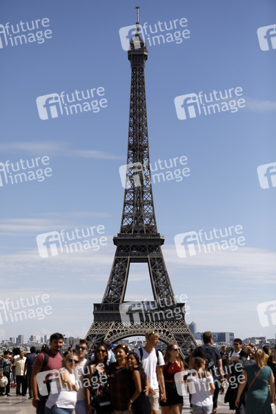 Tourismus, Touristen, Sightseeing, Stadt der Liebe, Wahrzeichen, Eiffelturm, Architektur, Sommer in Paris, Reiseziel, Frankreich, Kultur, Esplanade du Trocadero