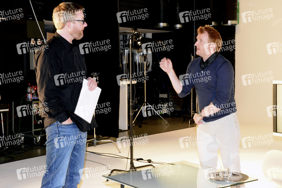 Elmar Krick und Tony Curran beim Dreh für einen Promotion-Spot für die TV-Serie 'Defiance' in den Voss TV Studios. Düsseldorf, 30.05.2014