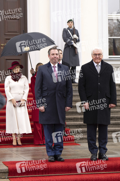 Guillaume V. Großherzog von Luxemburg und Frank-Walter Steinmeier bei der Begrüßung des Großherzogs von Luxemburg mit militärischen Ehren und zum gemeinsamen Gespräch im Schloss Bellevue. Berlin, 27.10.2025