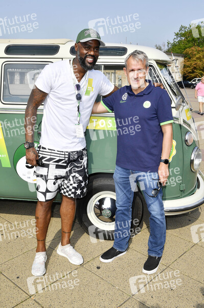 Grafite und Pierre Littbarski beim Start der 12. Auto Bild Klassik Rallye am Olympiastadion. Berlin, 29.08.2019