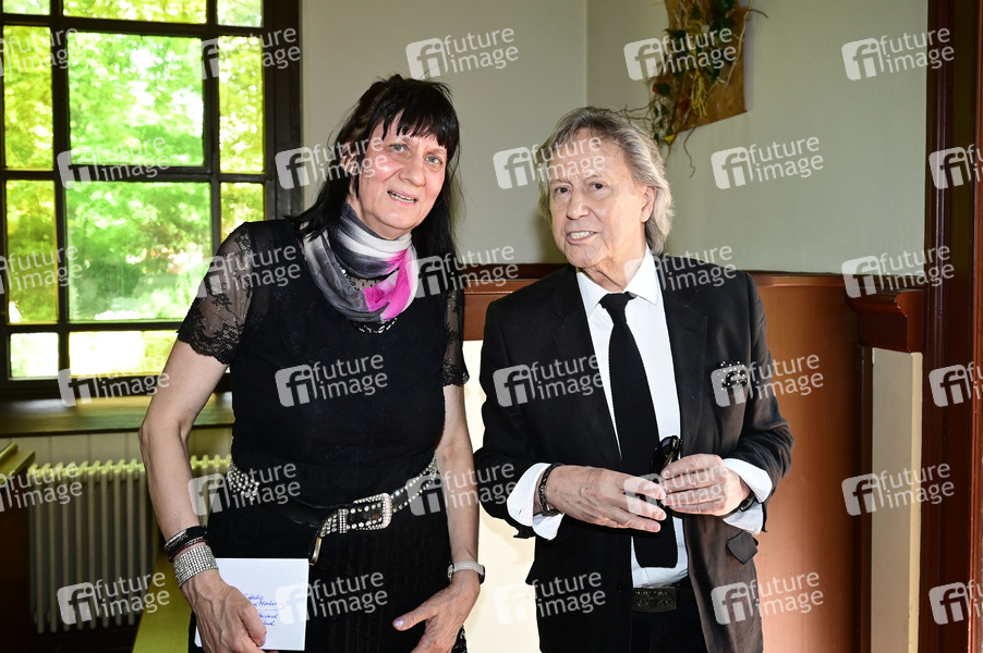 Heike Müller aka Heike Valentin und Bert Beel bei der Trauerfeier und Urnenbeisetzung für Bernd Müller aka Teufelsgeiger Mister Miller auf dem Friedhof Berlin-Adlershof. Berlin, 23.07.2024