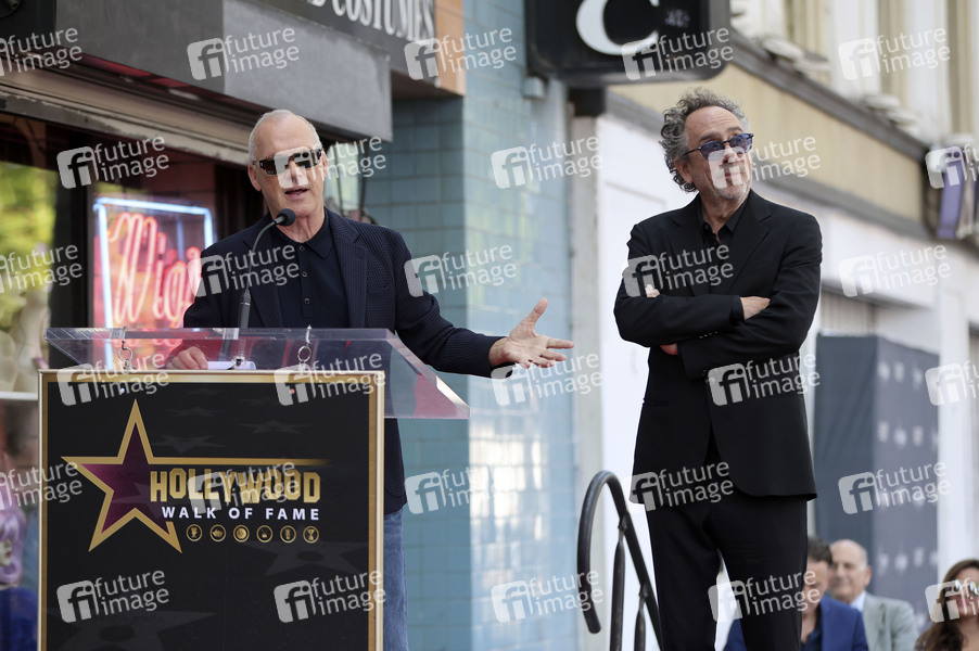 Michael Keaton und Tim Burton bei der Zeremonie zur Verleihung von einem Stern an Tim Burton auf dem Hollywood Walk of Fame. Los Angeles, 03.09.2024