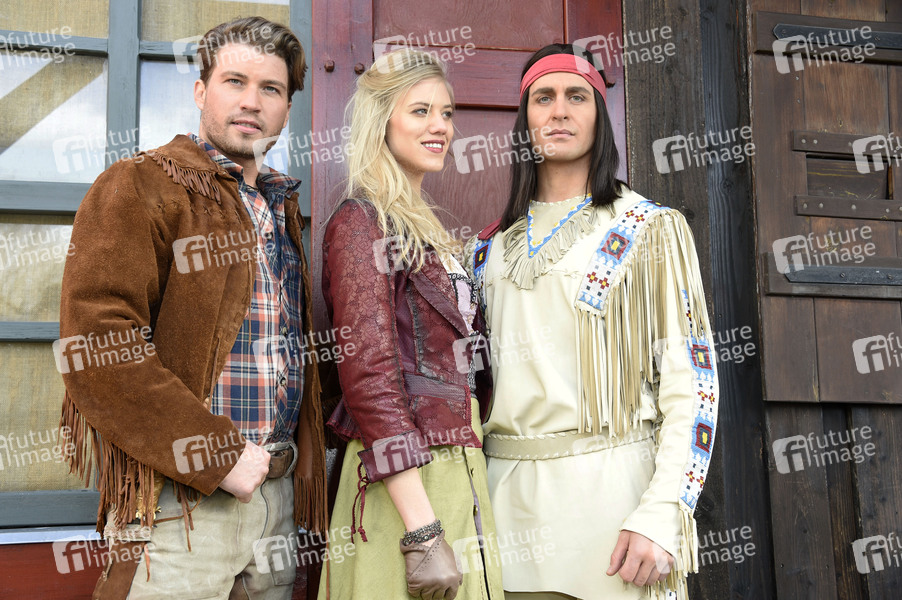 Raul Richter, Larissa Marolt und Alexander Klaws beim Pressetermin zur Vorstellung des neuen Winnetou und der Gaststars der Karl-May-Spiele 2019 im Indian Village. Bad Segeberg, 08.03.2019