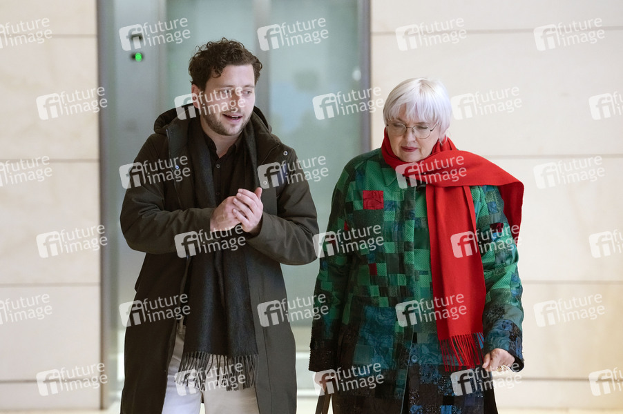 Felix Banaszak und Claudia Roth vor der Fraktionssitzung der Bündnis 90/Die Grünen-Bundestagsfraktion im Reichstagsgebäude. Berlin, 03.12.2024