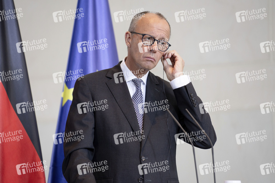 Friedrich Merz beim Empfang des Königs von Jordanien mit militärischen Ehren zu einem gemeinsamen Gespräch mit anschließendem Pressestatement im Bundeskanzleramt. Berlin, 29.07.2025