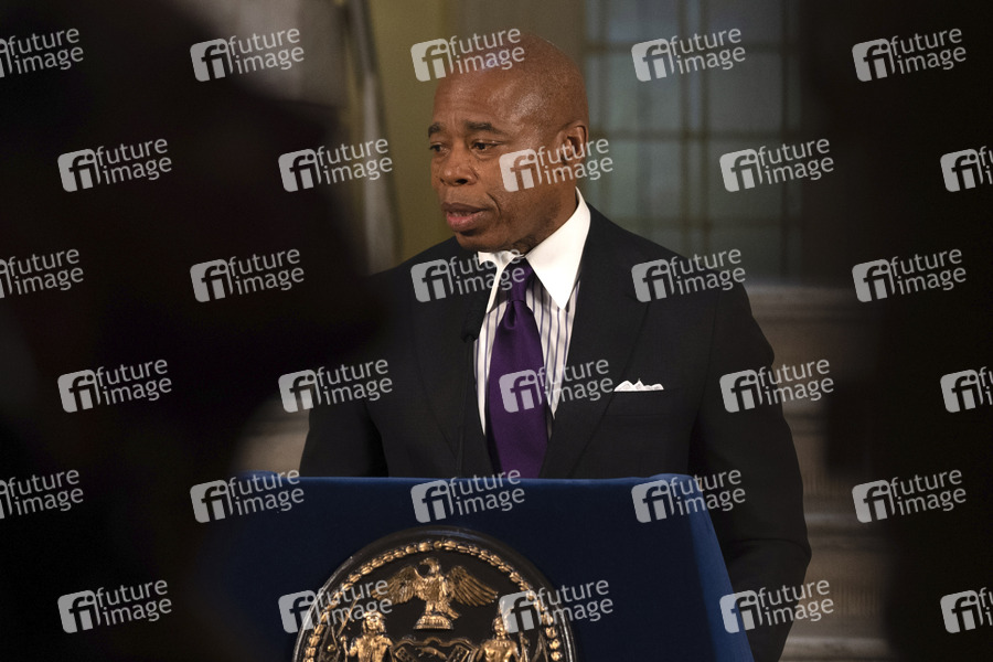 Bürgermeister Eric Adams bei einer Pressekonferenz zum Thema Obdachlosigkeit im Rathaus. New York, 30.03.2022