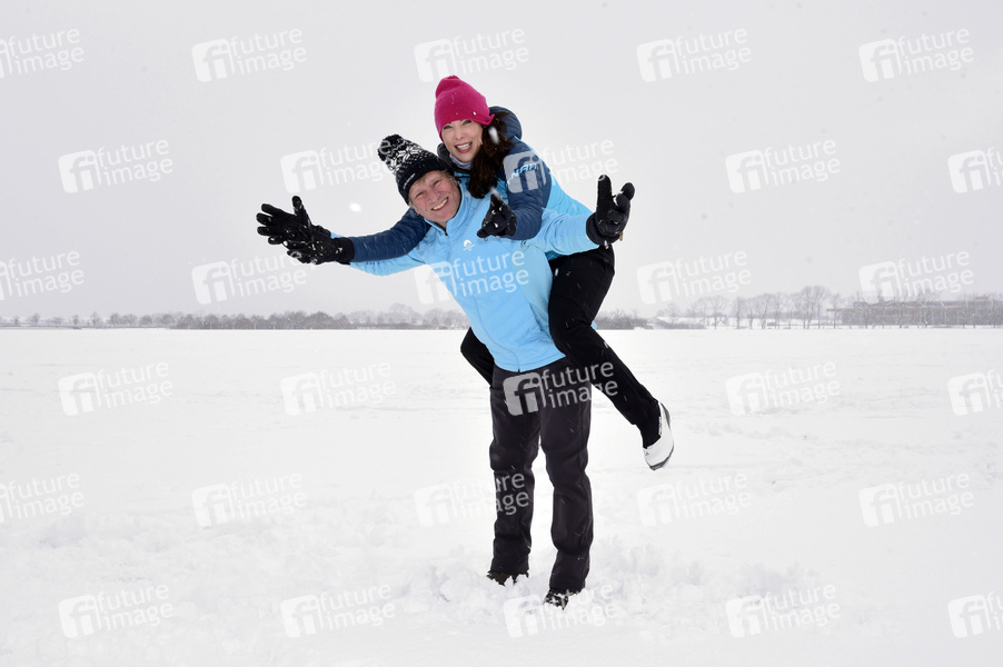 Alexandra Polzin mit Ehemann Gerhard Leinauer beim Winterspaziergang. München, 18.01.2021