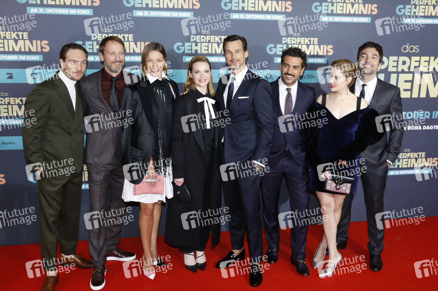 Frederick Lau, Wotan Wilke Möhring, Jessica Schwarz, Karoline Herfurth, Florian David Fitz, Elyas M'Barek, Jella Haase und Bora Dagtekin bei der Premiere des Kinofims 'Das perfekte Geheimnis' im Mathäser Filmpalast. München, 21.10.2019