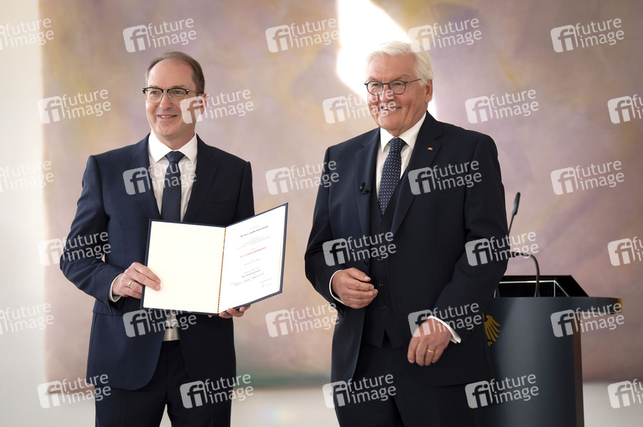 Alexander Dobrindt und Frank-Walter Steinmeier bei der Ernennung des Bundeskabinetts im Schloss Bellevue. Berlin, 06.05.2025