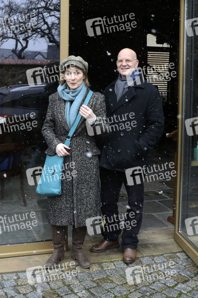 Josephine Hoppe mit ihrem Ehemann Dirk Neumann bei der Aufzeichnung der Fernsehsendung zum 100. Geburtstag von Herbert Köfer in Hoppes Hoftheater. Dresden, 06.02.2021