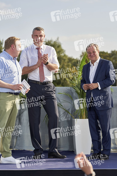 Tilman Kuban, Vitali Klitschko und Armin Laschet in der Wahlkampfarena der Jungen Union zur Bundestagswahl im Expowal. Hannover, 04.09.2021