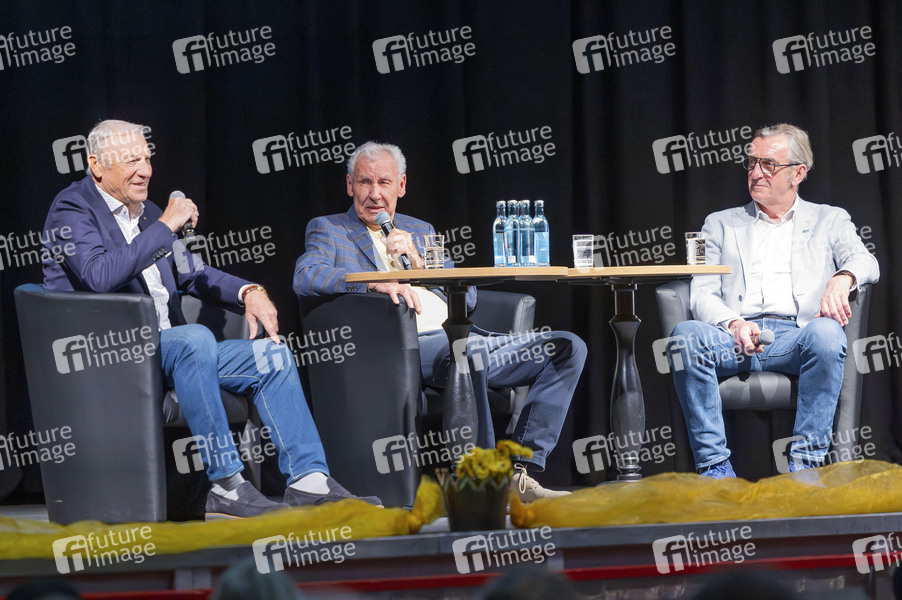 Eduard Geyer, Thomas Veit und Ralf Minge beim Talk 'Der sächssche Dobbelpass' in der Stadthalle Krone. Bautzen, 13.03.2026