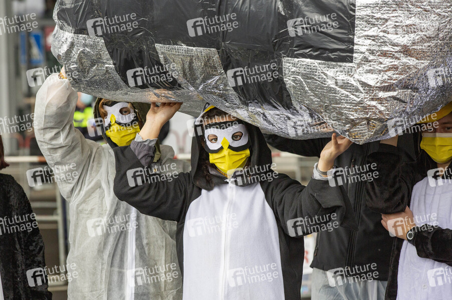 Protestaktionen von Mitgliedern des Bündnisses 'Am Boden bleiben' bei der Eröffnung des Flughafens Berlin-Brandenburg (BER). Schönefeld, 31.10.2020