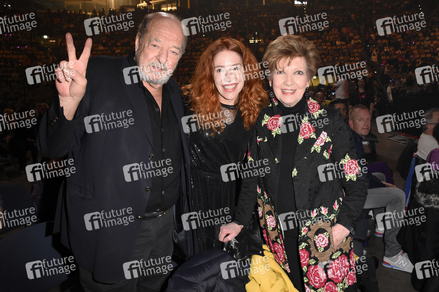 Ralph Siegel, Laura Käfer und Carolin Reiber bei der Show 'Das große Schlagerfest.XXL - Die Party des Jahres' in der Olympiahalle. München, 21.02.2020