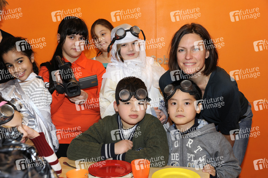 Fototermin mit Nina Kronjäger und Mädchen und Jungen der Wilhelm-Hauff-Grundschule im Labyrinth Kindermuseum, Berlin