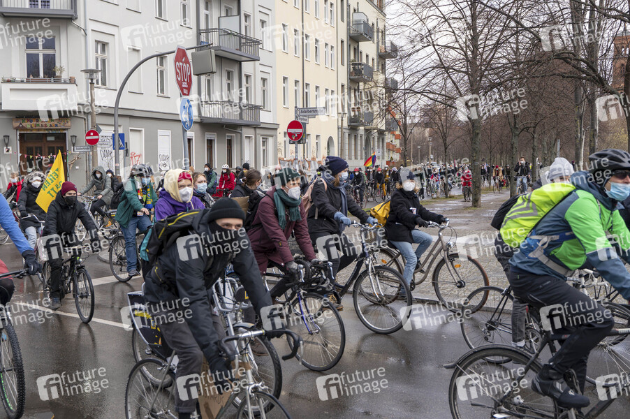Am Freitag finden mehrere Demonstrationen zum globalen Klimastreik von Fridays for Future in Berlin statt. Auf dem Alexanderplatz startet eine antikapitalistische Fahrraddemo zum Potsdamer Platz. Berlin, 19.03.2021