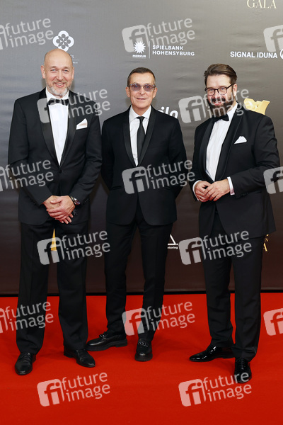 Christian Vosseler, Manuel de la Roche und Marc Peine bei der 20. Kinderlachen-Gala 2024 in der Messe Dortmund. Dortmund, 30.11.2024